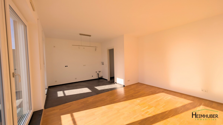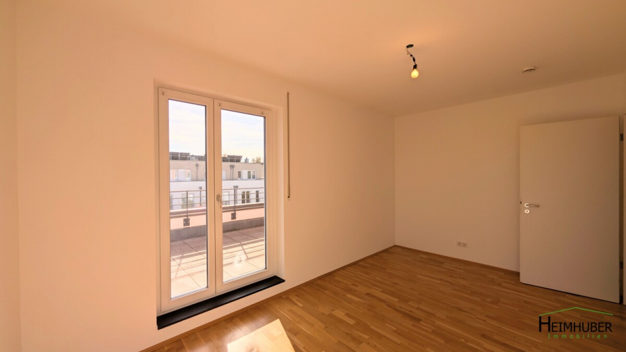 Die Dachterrasse** mit ihren ca. 20 m² ist vom Wohnzimmer aus begehbar und verläuft auf der Ost- und Westseite der Wohnung. Somit ist sie auch vom Kinder -, Bade- und dem Schlafzimmer aus begehbar. Das Badezimmer verfügt wie die ganze Wohnung über eine Fußbodenheizung. Durch die bodentiefen Fenster ist die Wohnung hell und freundlich. Der Flur, die Küche, das Badezimmer und Gäste WC mit Dusche sind mit einem schönen dunklen Fliesenboden ausgestattet. Im Wohnzimmer und in den beiden Schlafzimmer ist ein Parkettboden aus Holz verlegt.
