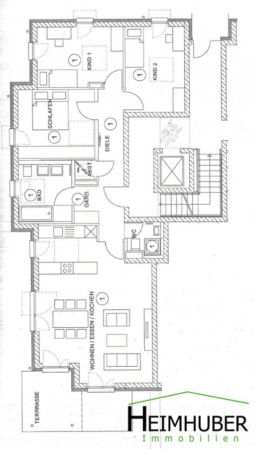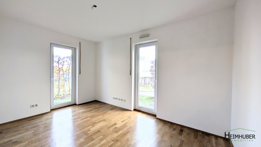 Die ca. 12 m² große Diele mit Garderobe heißt Ihre Gäste willkommen. Von dort aus gelangt man in das ca. 39 m² große Wohnzimmer mit Platz für eine Küche. Den Garten bzw. die Terrasse sind durch mehrere Türen zu erreichen. Die Wohnung verfügt darüber hinaus über 3 Schlafzimmer, ein großes Bad mit Fenster, ein Duschbad mit WC, eine Abstellkammer und eine Kammer für Waschmaschine und Trockner. Die Böden in den Wohnräumen sind aus Parkett, die Bäder und der Flur sind gefliest. Bis auf die Kammer haben alle Räume eine Fußbodenheizung. Weiter gehören zur Wohnung ein Kellerabteil und ein Tiefgaragenstellplatz.