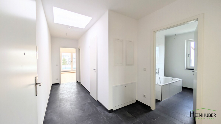 Die Wohnung verfügt darüber hinaus über 2 Schlafzimmer, wo von ein Schlafzimmer über eine ca. 4,4 m² große Ost-Terrasse verfügt. Ein großes Bad mit Fenster, Badewanne, Dusche, 2 Waschbecken sowie einem WC bieten einer Familie gut Platz. Ein Gäste WC ist ebenfalls vorhaben. Die Böden in den Wohnräumen sind aus Parkett, die Bäder, die Küche und der Flur sind gefliest. Bis auf die Kammer haben alle Räume eine Fußbodenheizung. Weiter gehören zur Wohnung ein Kellerabteil und ein Tiefgaragenstellplatz.